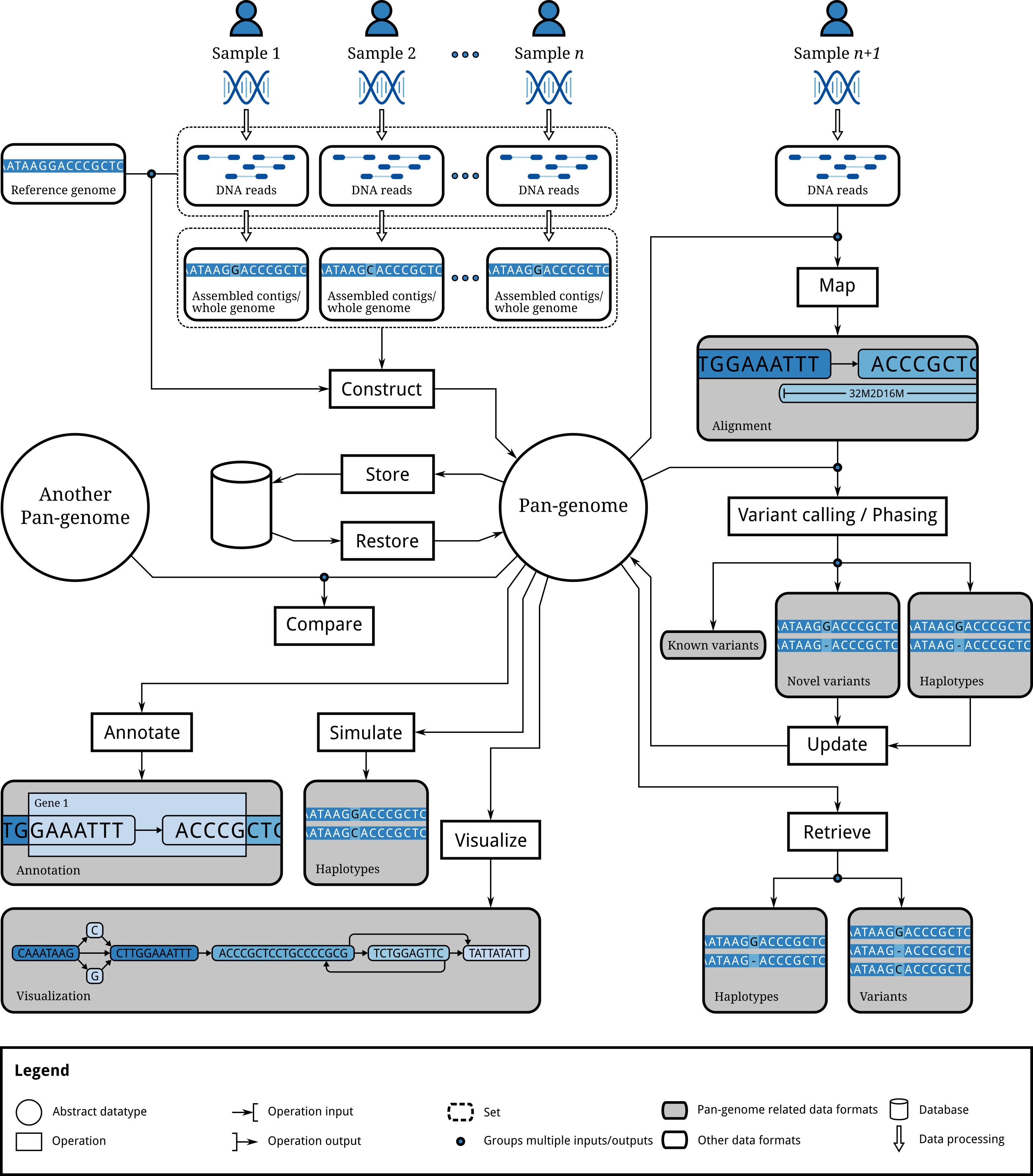- Constructing, updating, indexing and compressing pan-genome graphs (Work Package 1),